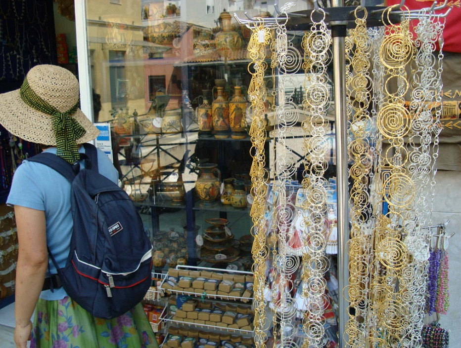 관광객들을 유혹하는 기념품 가게가 즐비하게 늘어서 있으며, 광장 앞에는