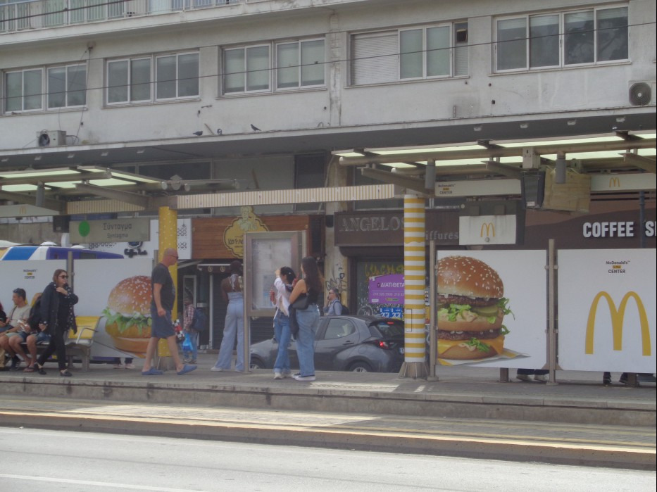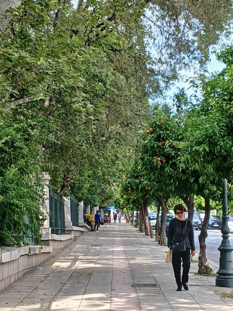 거리(Mavromateon Str.) 에 위치한 페디온 아레오스역 (Pedion Areos