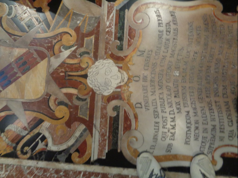 바닥은 대리석으로 다양한 색깔로 연결되는 그림을 표현하고 있고 1608년 카라바조가 남긴 세례