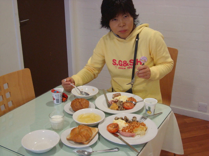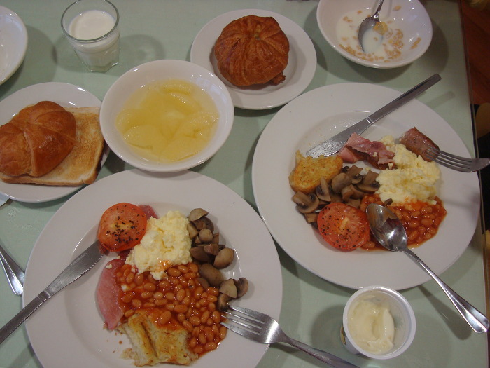 우린 어제 밤에 5파운드 짜리 빅 브랙퍼스트 를 예약했는데 모든 사람이 그러한 듯