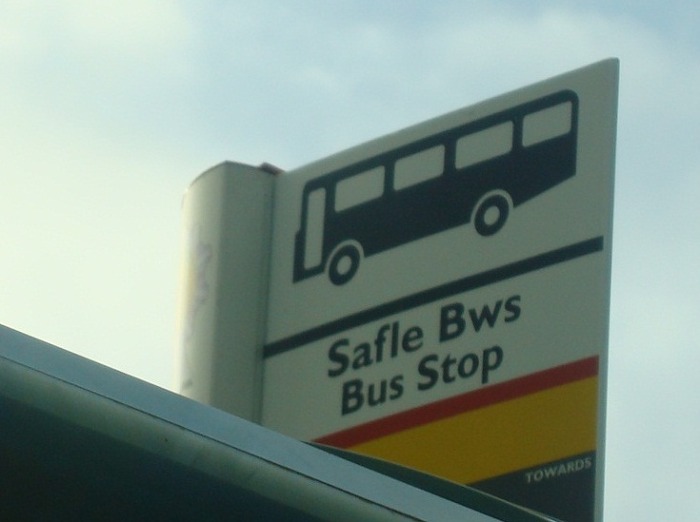 위에 ”Safle Bws" 라고 켈트족의 웨일즈어 로 병기된 것을 봅니다.