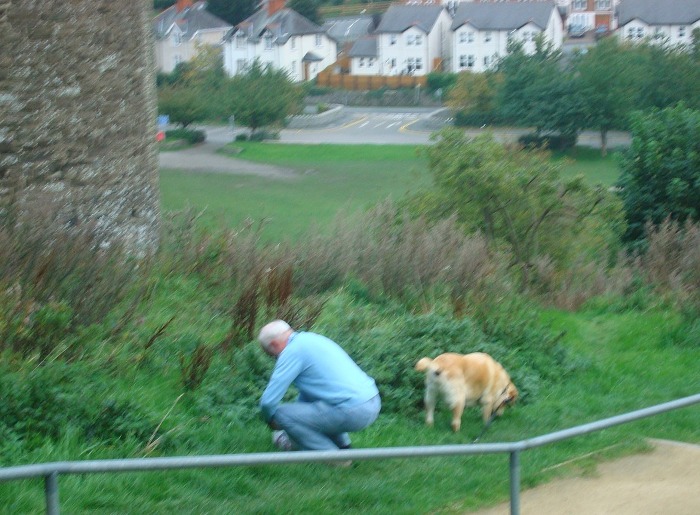 호텔을 나서 언덕을 내려가는데 아침 산책 을 나온 사람이 "개" 가 볼일을 보고 난후