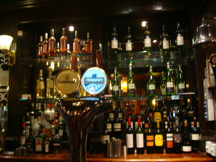 6번째 정거장 얼스코트역 에 내려서는 걸어서 오다가 펍에서 맥주 한잔 을 들고는