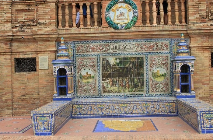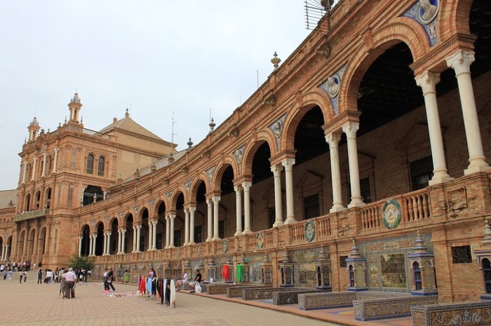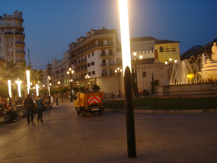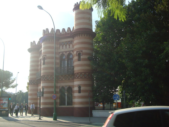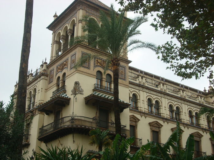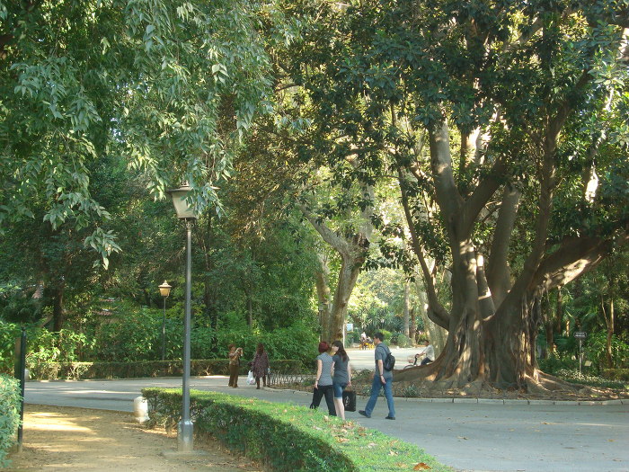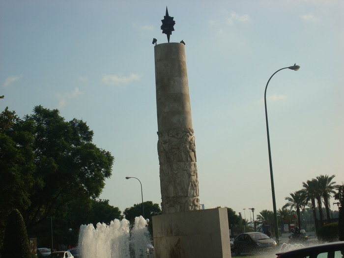 마리아 루이사 공원 을 거쳐 원통형 특이한 탑 이 서 있는 분수를 지나 왼쪽으로