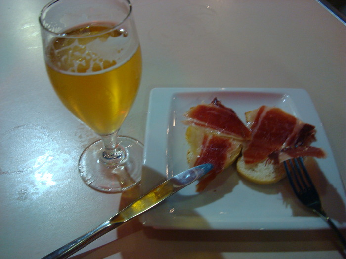 에서 맛 본 하몽 Jamon 을 안주로 시켜 맥주 한잔 을 마십니다.