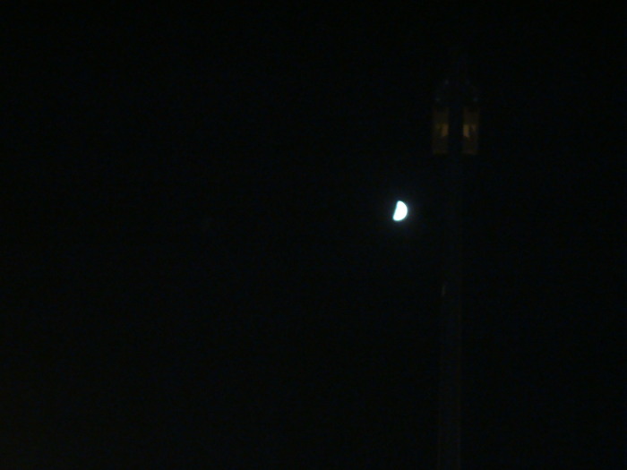 잘 먹고 마시고는 밖으로 나오니 밤하늘 저켠에 어느새 상현달 이 떴는데.... 내고향