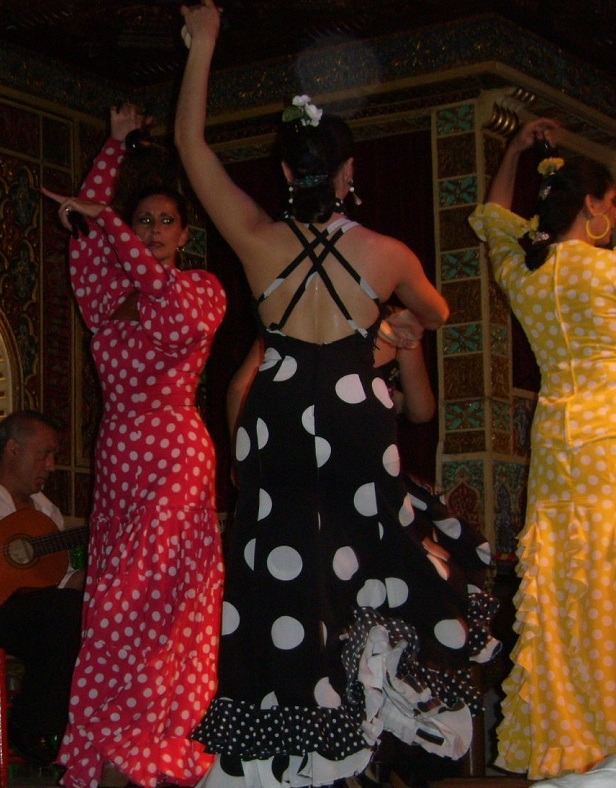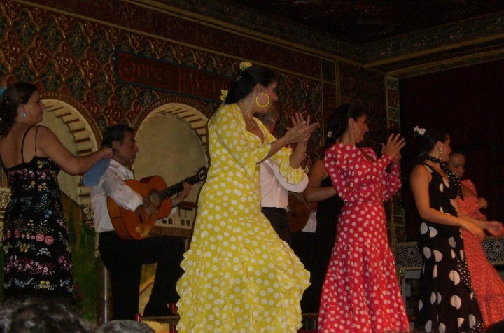 화려한 색상의 플라멩코 의상 으로 차려 입은 세뇨리타 와 세뇨라 들이 볼만 하답니다!