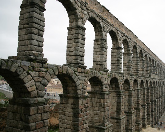 로마 수도교 Acueducto de Romano 는 2천년 전인 로마 시대 에 건설된 2층으로 된