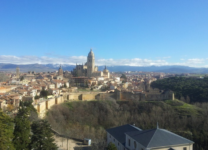 알 카사르성 은 구시가지 서북쪽 에 떨어져 있는데 여기서 바라보는 구시가지 대성당 의