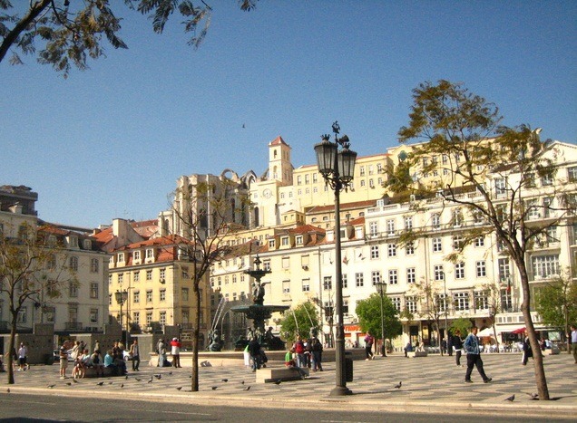 파도를 형상화 한 물결 무늬 가 가득한 로시우 광장 Praco do Rossio 을 지나서