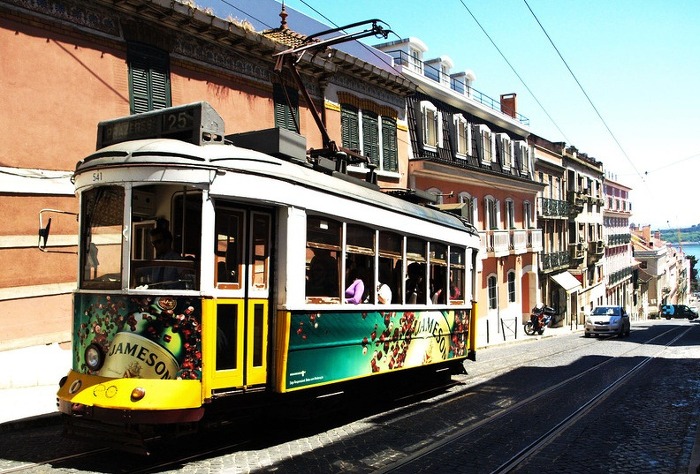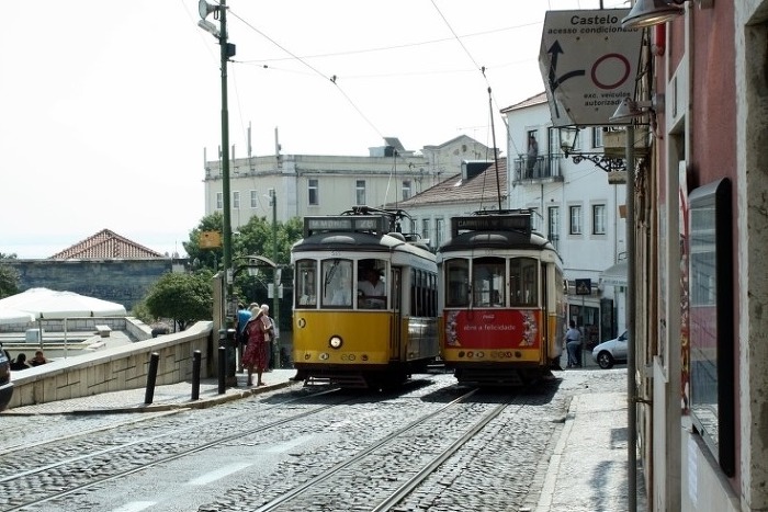 다시 알파마 지구 고지대 에서 트램 을 타고 내려오는 데.... 중간쯤에 또 두 개의