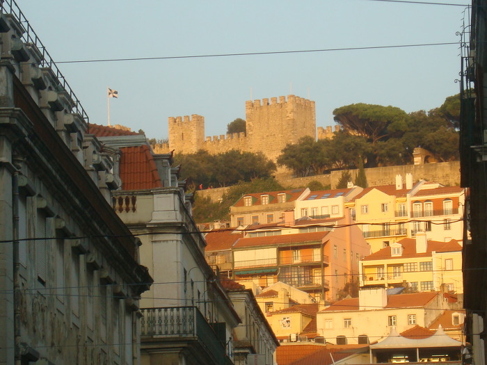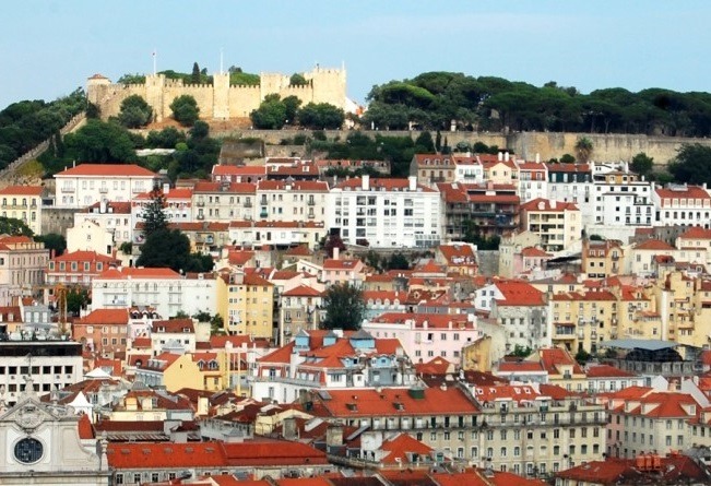 전망대 에서 리스본 시내 와 저 너머 바다의 파노라마를 조망 하는 데... 여기 언덕에는