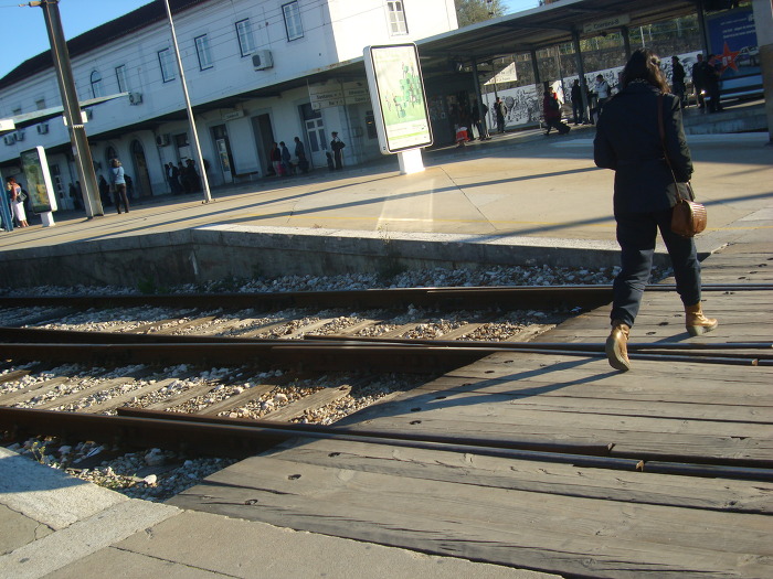 로컬 기차 를 타고 5분 만에 교외에 있는 코임브라 B 역 에 내립니다.
