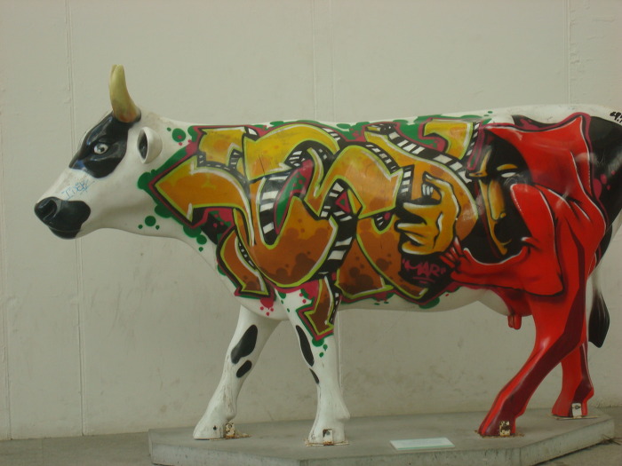 아베이루 역사 는 자그마하지만 붉은 색 으로 그린 황소 그림 이 눈에 확 띄는데다가