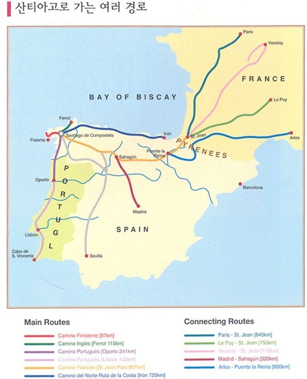 혹은 체력에 자신이 있는 사람은 포르투 에서 비고 를 거쳐 산티아고 데 콤포스텔라