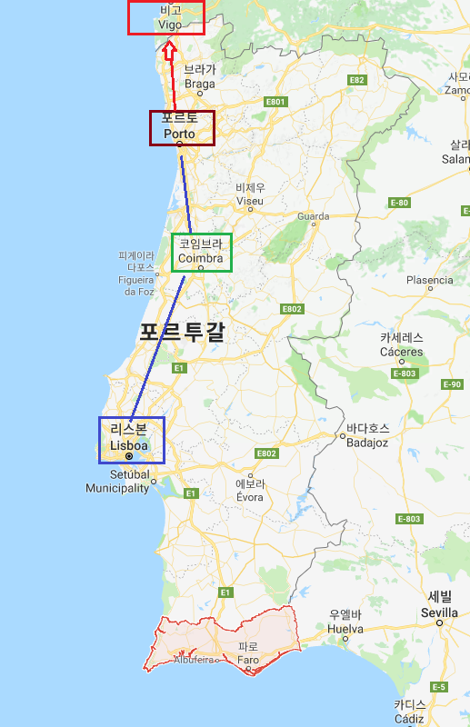 돈 후에 리스본 에서 부터 포르투갈을 북상하여 코임브라 를 거쳐 포르투 를 구경합니다.