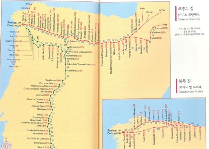 산티아고 데 콤포스텔라 에 이르는 800km 에 달하는 길로 걸어서 한달 이 걸리는데...