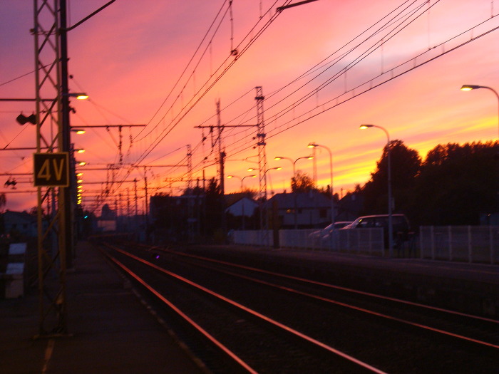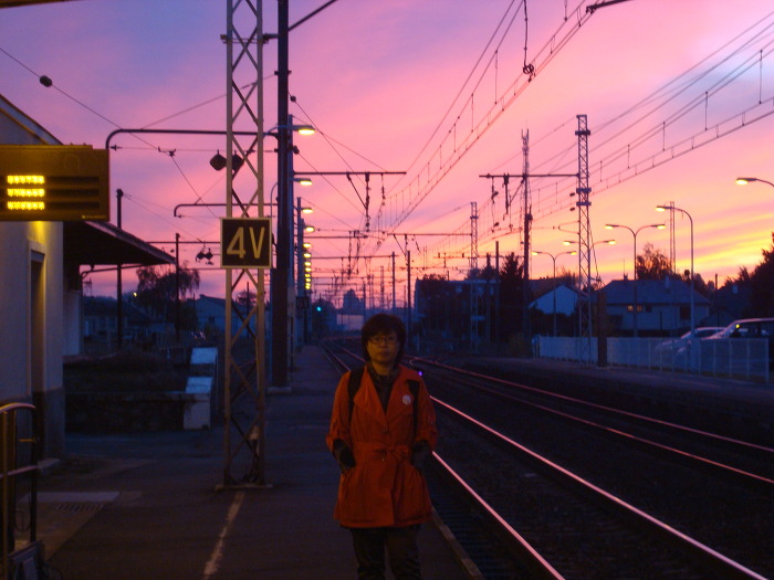 플랫폼 에서 기차를 기다리는데 석양 이라 철길이 빨갛게 물드는걸 보니..... 마눌과