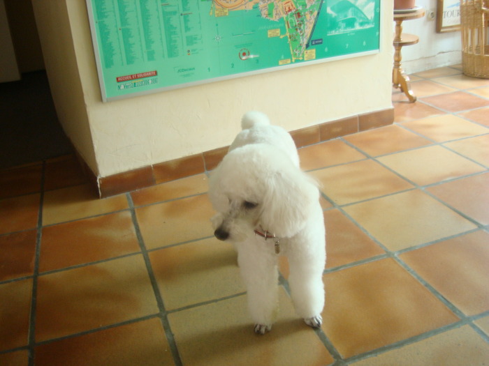 그러고는 카페 를 나와 걸어서 우리가 묵는 호텔 드 로시니 로 돌아오니 개 가 아침에