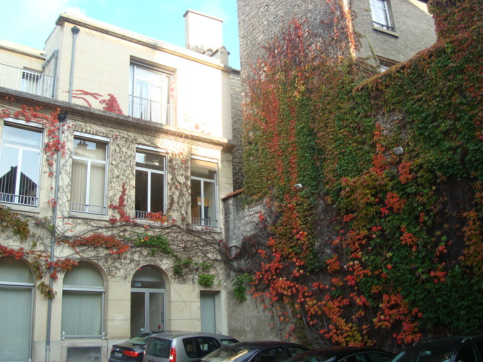 어느 집의 담벼락 에 붉은 담쟁이 넝쿨 이 참으로 매혹적 이네요?
