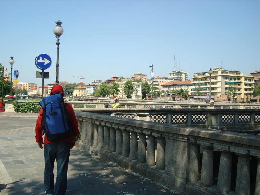 강변의 벤치에서 마눌과 만나서는 무거운 배낭 을 메고 베르디 다리 Ponte G. Verdi 로