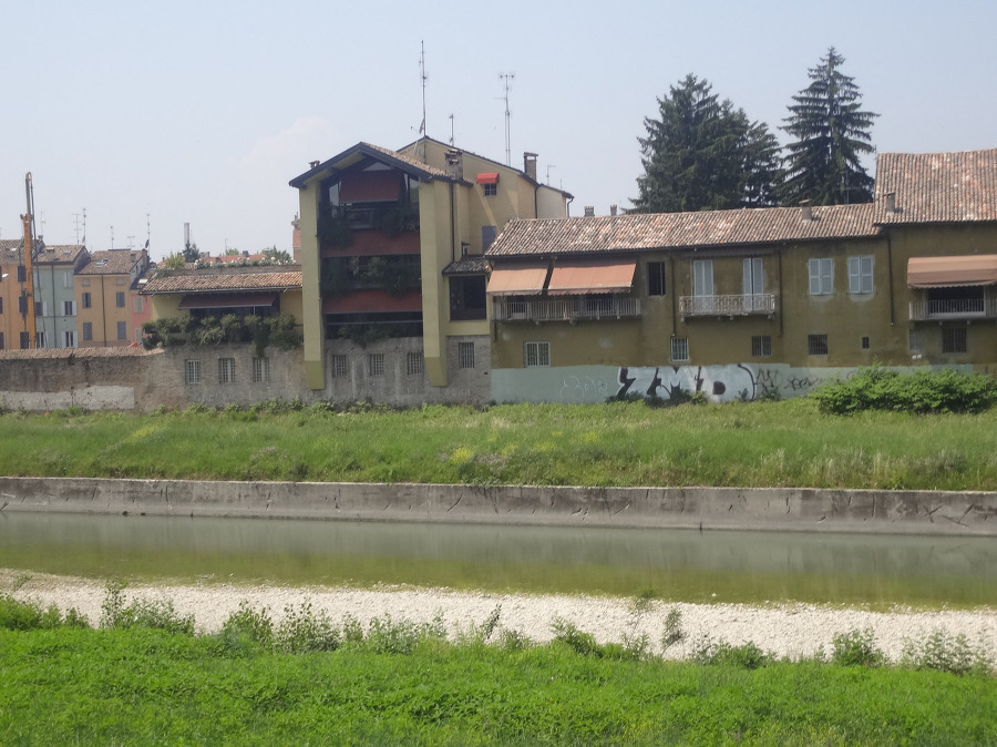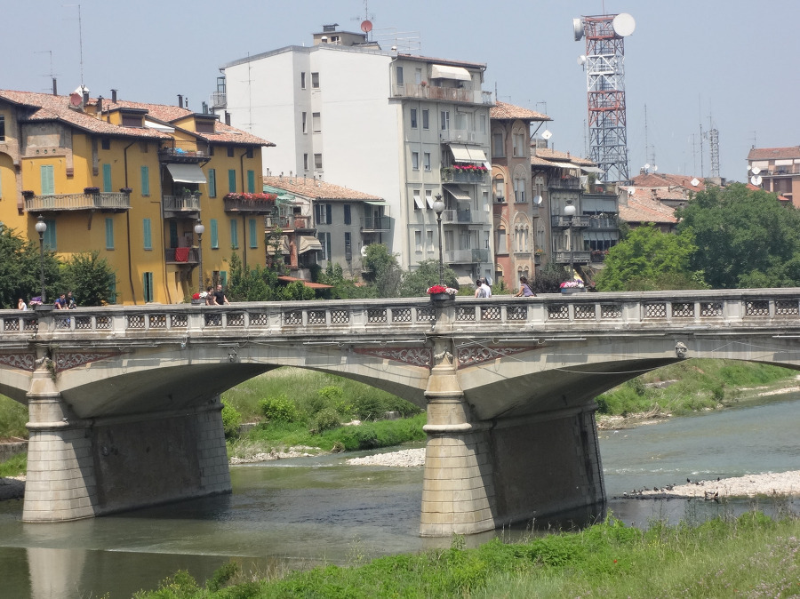 5월 30일 모데나 에서 기차로 파르마 에 도착해 강변을 따라 걸어 필로타 광장