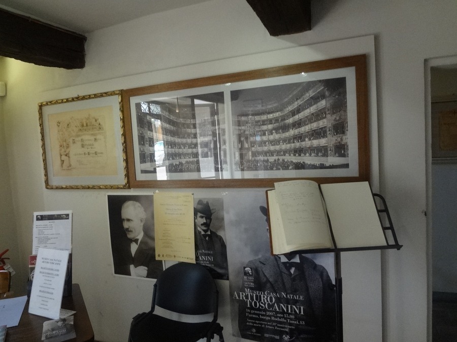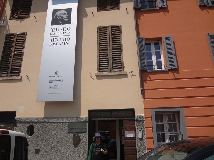 토스카니니의 거대한 초상화 건너편에 기념관은 1867년 지휘자 토스카니니가 태어난 집