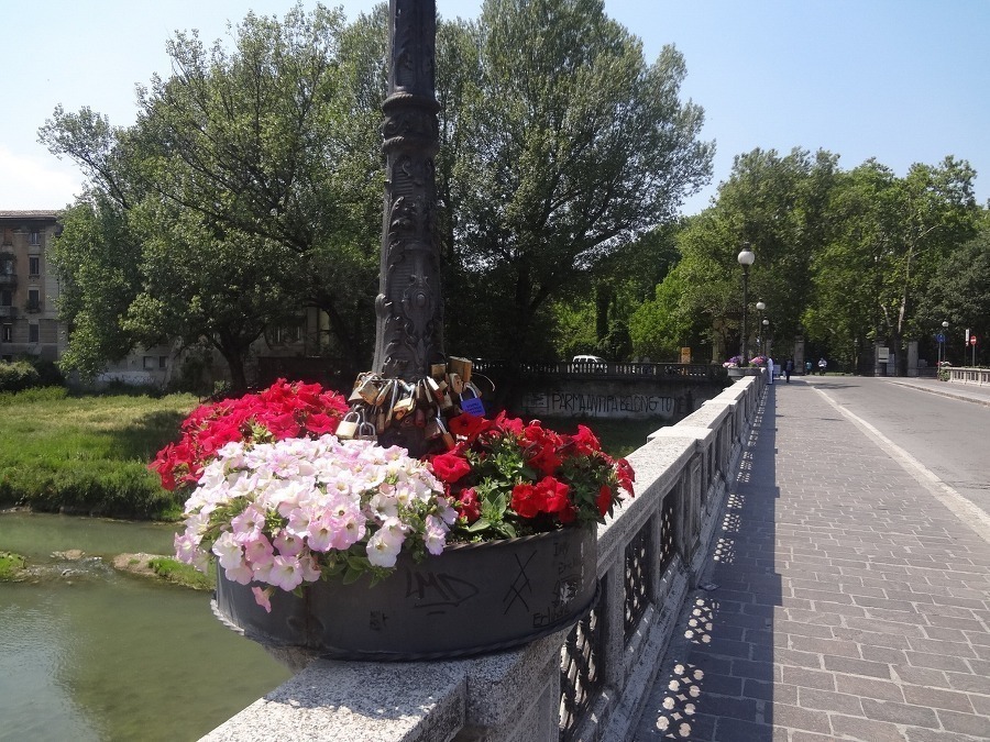 파르마 강 을 건너는데..... 다리 중간 기둥에 채워진 사랑의 열쇠 가 생경스럽네요?