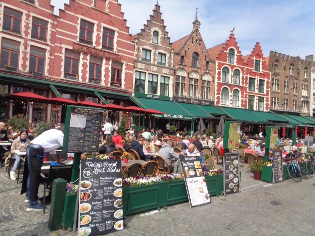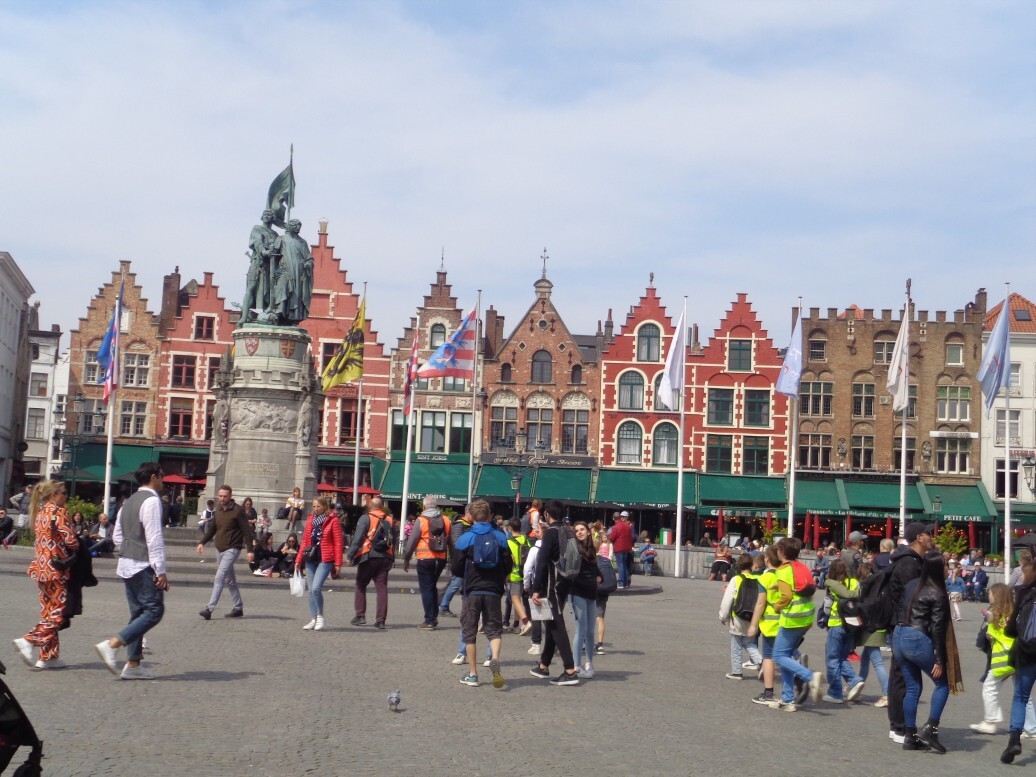 얀 브레이텔상 이 서 잇으니 1302년 대 프랑스봉기때 영웅이며 카페 테라스가 즐비하며 늘 북적입니다.