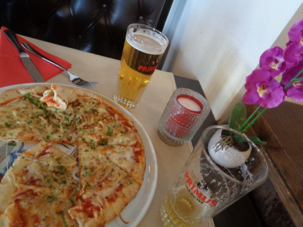 앉아 피자에 생맥주 를 들면서 하루 고단한 여행의 피로를 푸는데 12유로니 싼 편입니다.