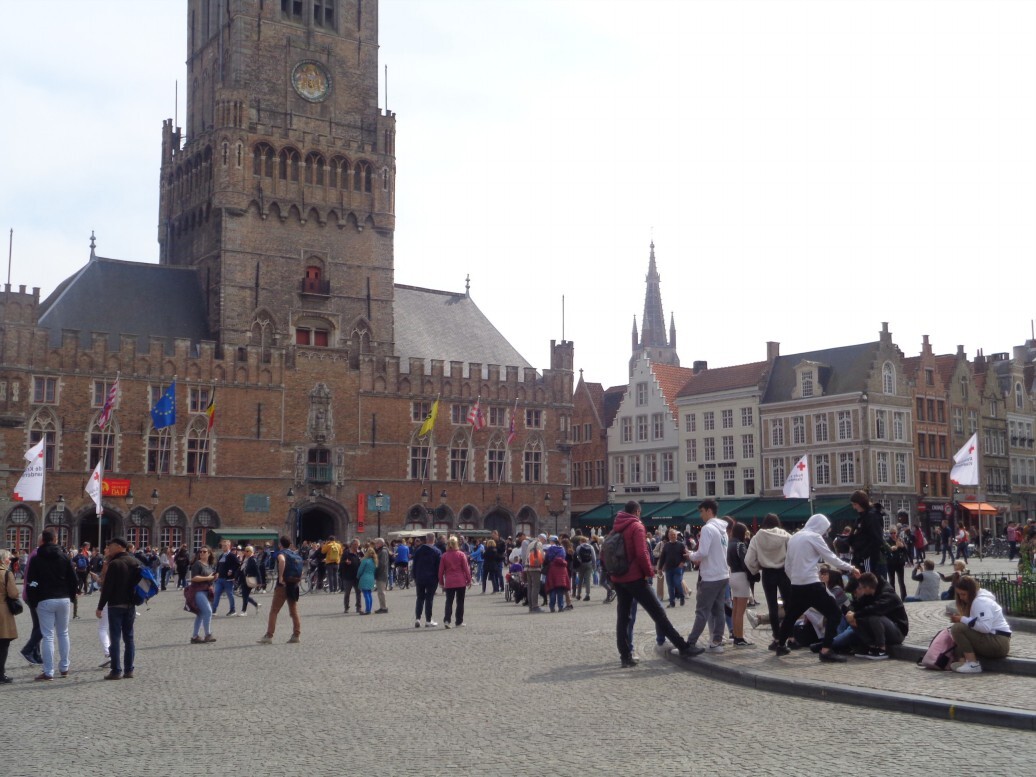 우뚝 솟은 벨포트(종루) 에다가 초콜릿 과자 처럼 보이는 길드 하우스 에 둘러싸여 있으며 중앙에