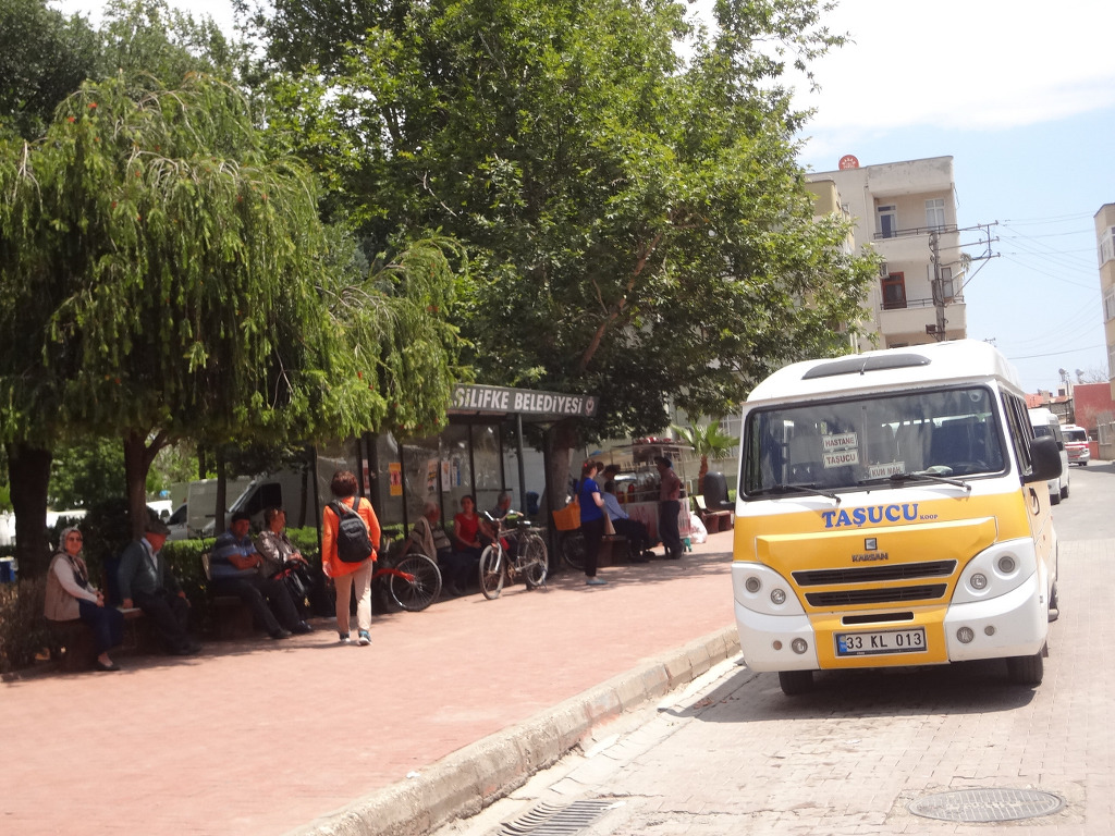 이런저런 회상에서 깨어나 사람들에게 항구 도시 타수주 Tasucu 로 가는 버스