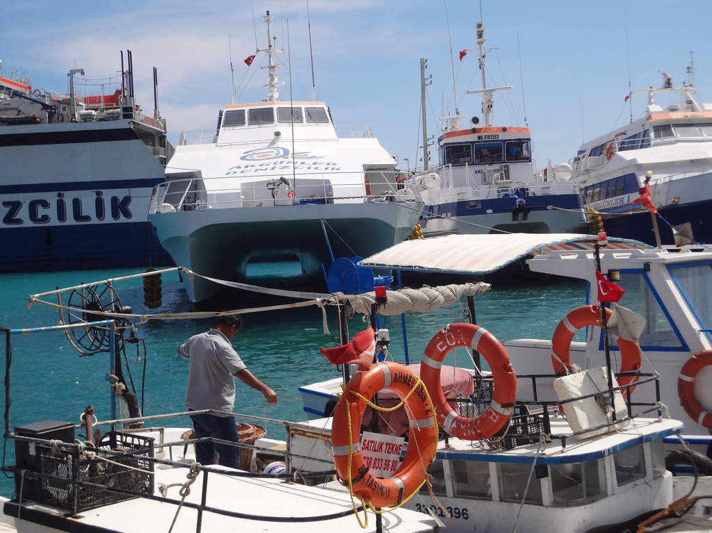 항구로 나와 배들을 구경하는데 이 도시 타수주 Tasucu 에서는 키프로스섬 으로 가는 배도