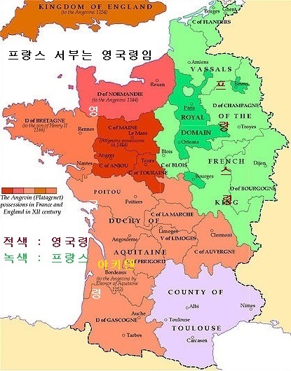 보르도가 포함된 아키텐 에 가스코뉴에 끼엔느 까지 많은 영토를 가져간게 기막히지요?