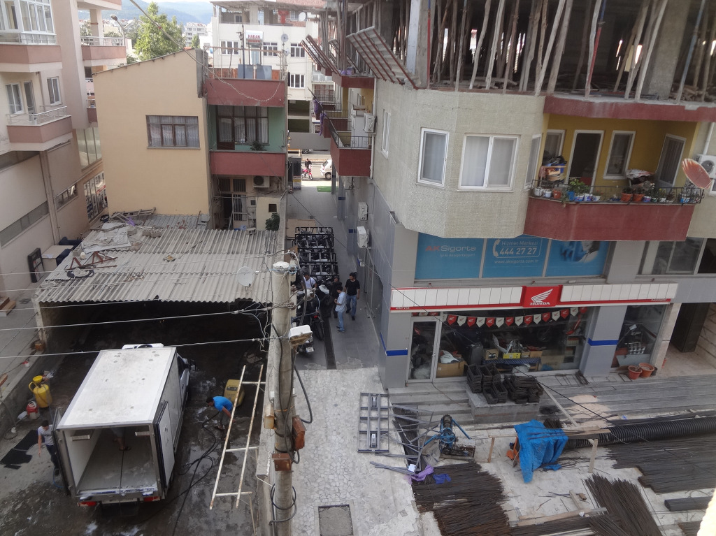 돌아와 쉬는데... 바깥이 소란스러워 창문을 열고 내다보니 건축 공사장 이네요?