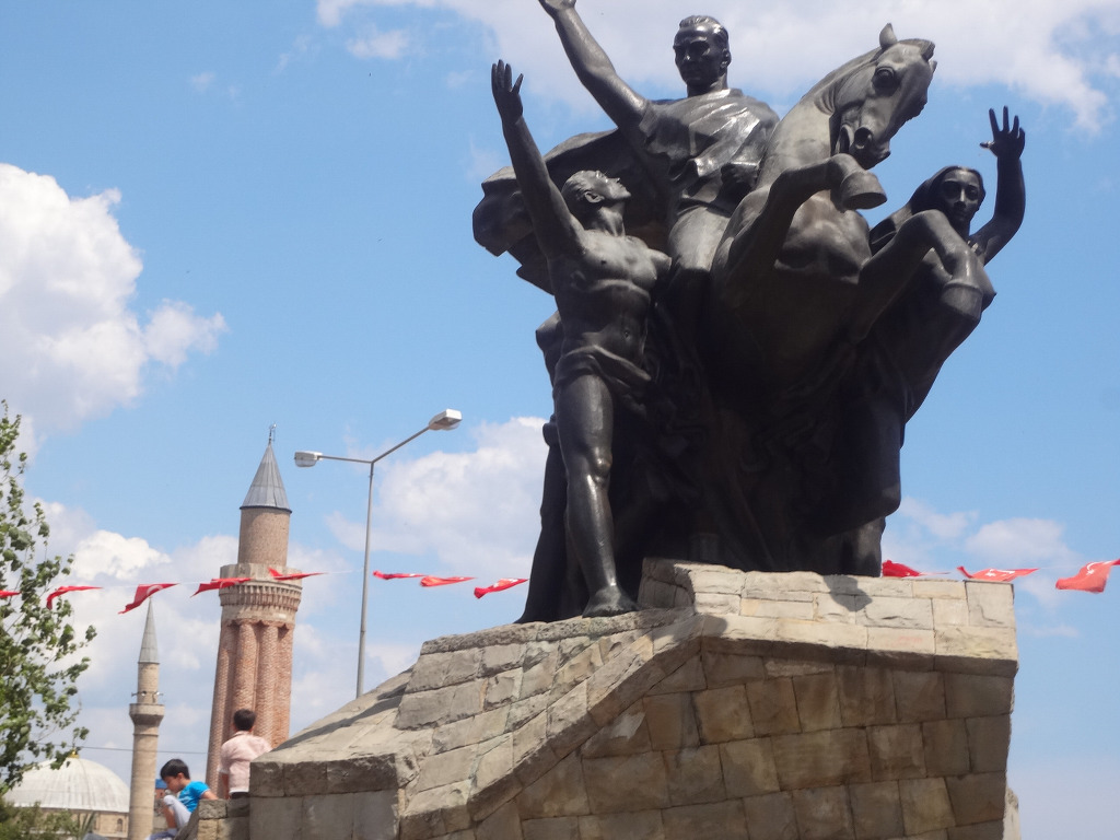 광장인데 말을 탄 아타튀르크 케말 파샤의 동상 이 서 있으며