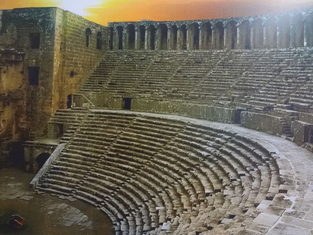 중형 버스인 “마나브가트 Manavgat" 회사 버스 를 타고 아스펜도스 Aspendos 와