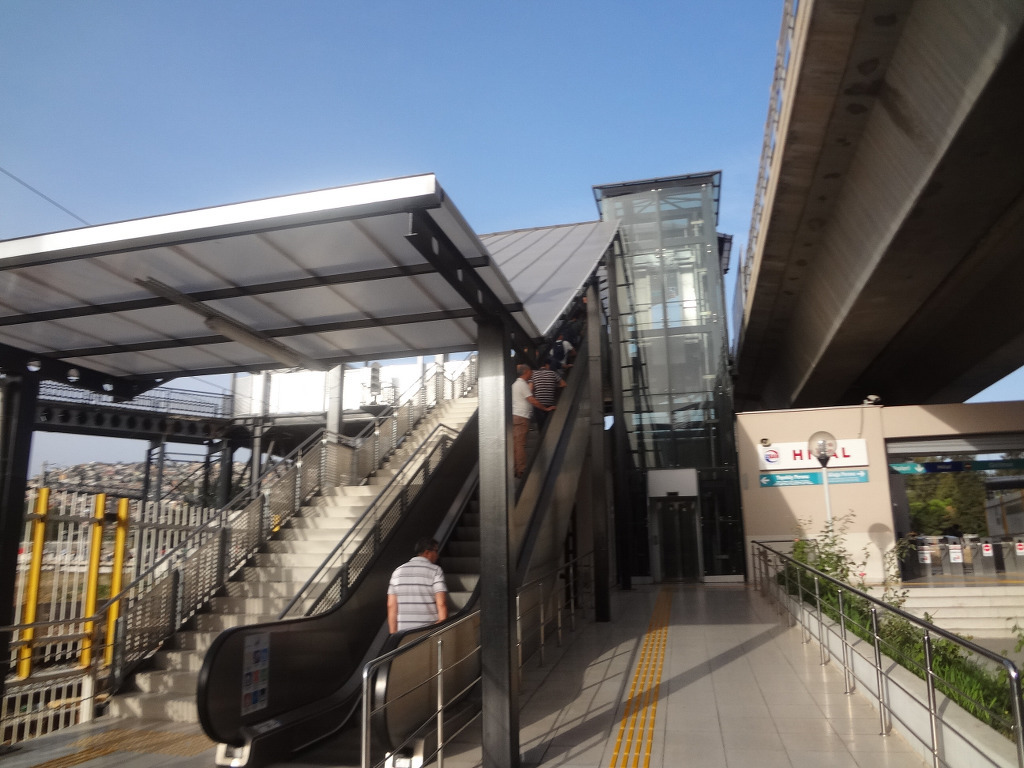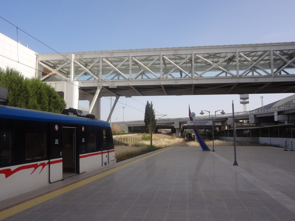 Adnan Menderes havalimani 역 에 내려 육교로 도로를