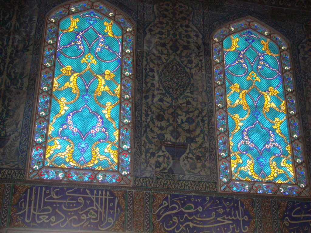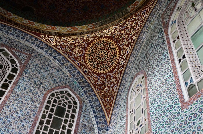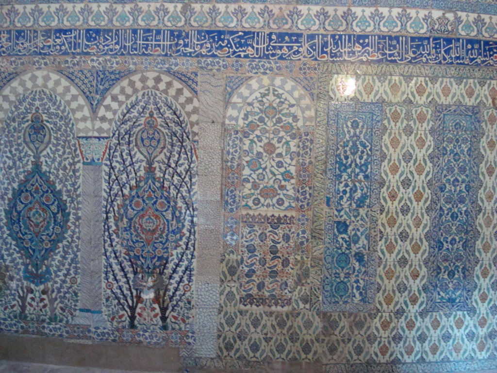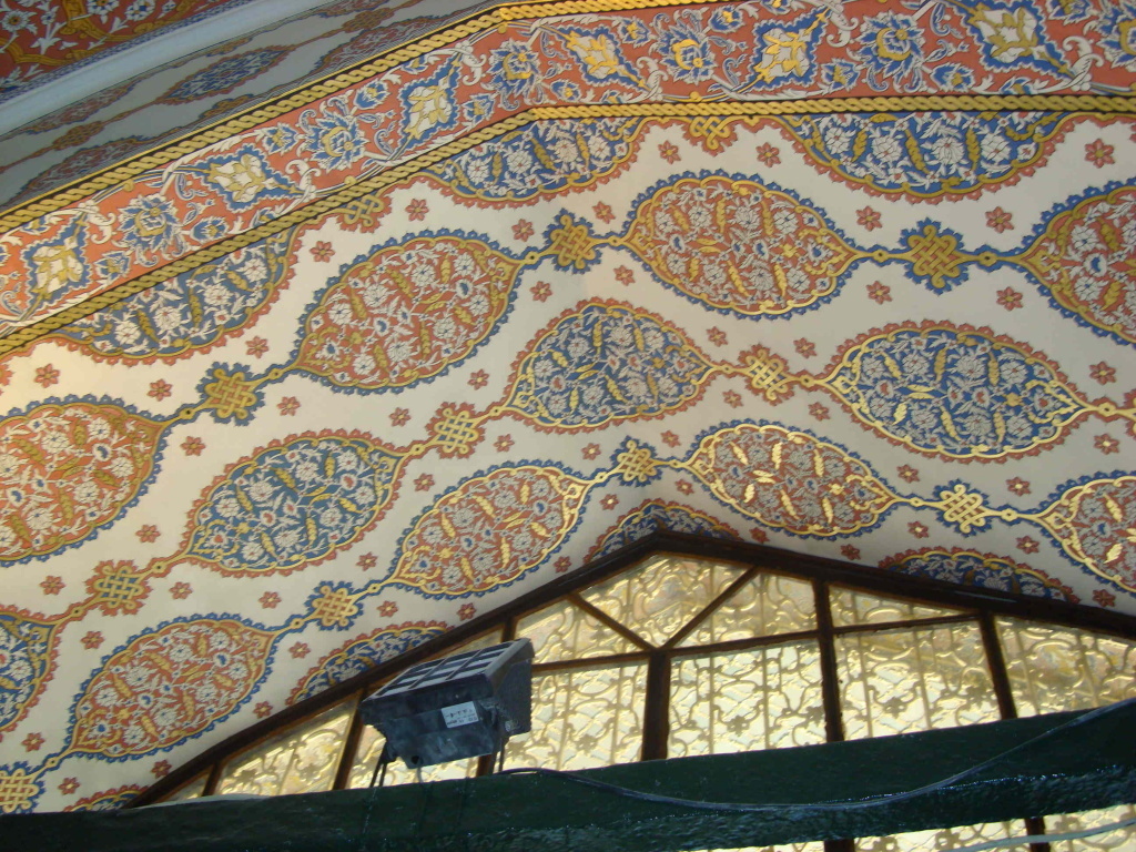 방안의 장식이 더욱 훌륭하여 채색타일 과 모자이크와 사방무늬들이 빛을 발하고