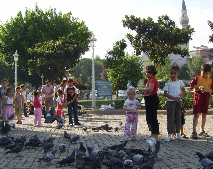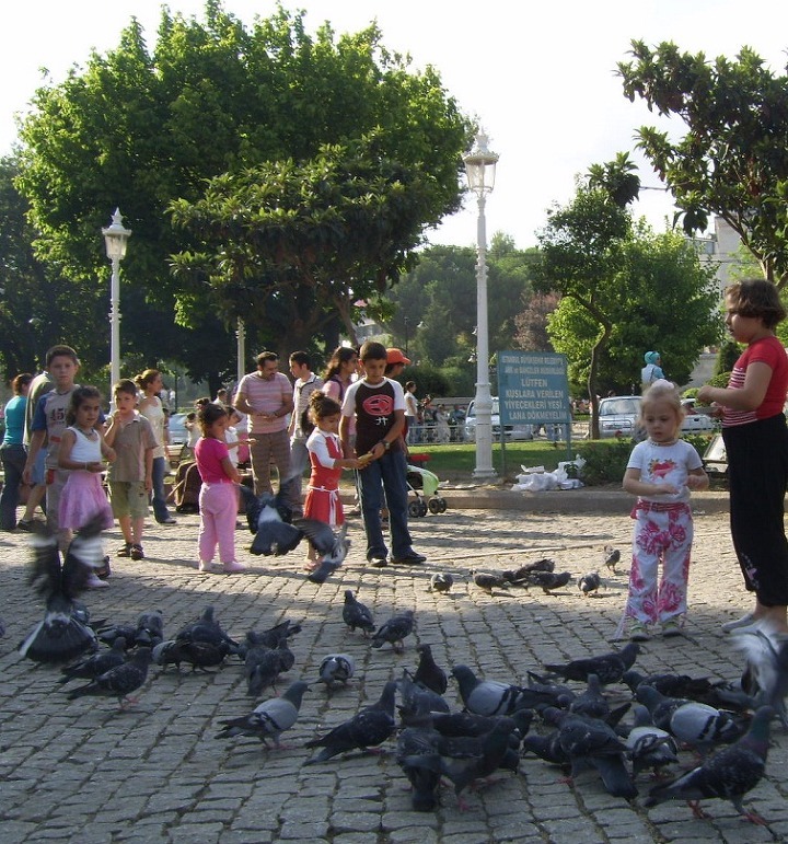 그리고 광장 에는 어린아이들이 비둘기 모이주기에 열중하는