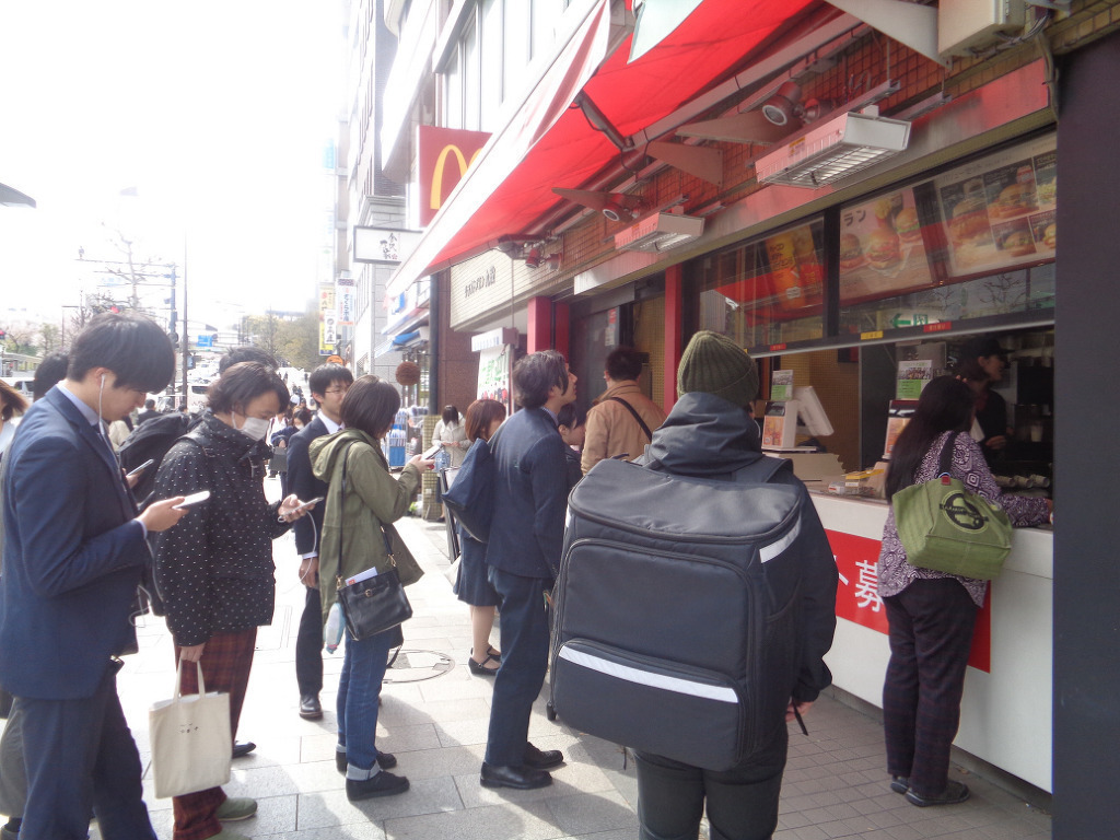 가장 사람들이 많은건 햄버거 가게 로 줄을 서서 주문하고 기다렸다가