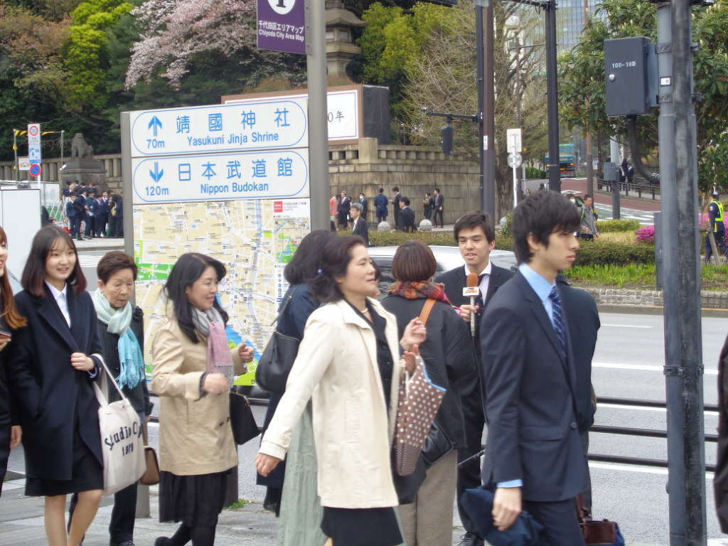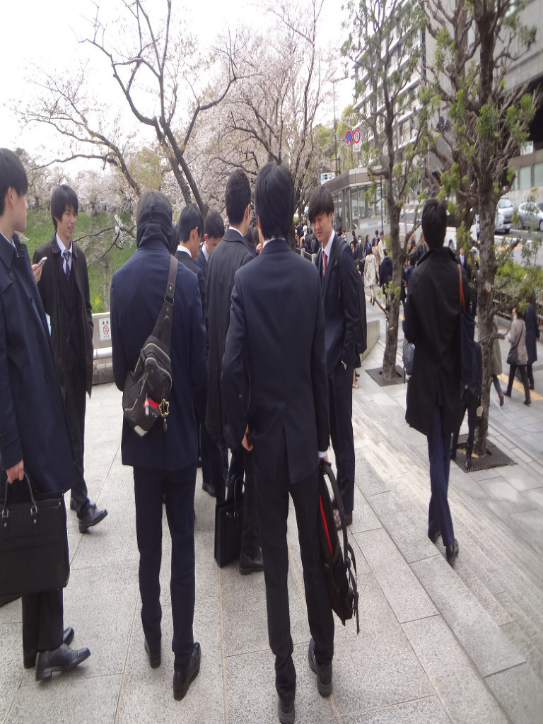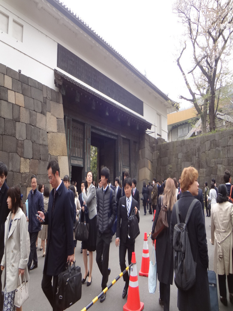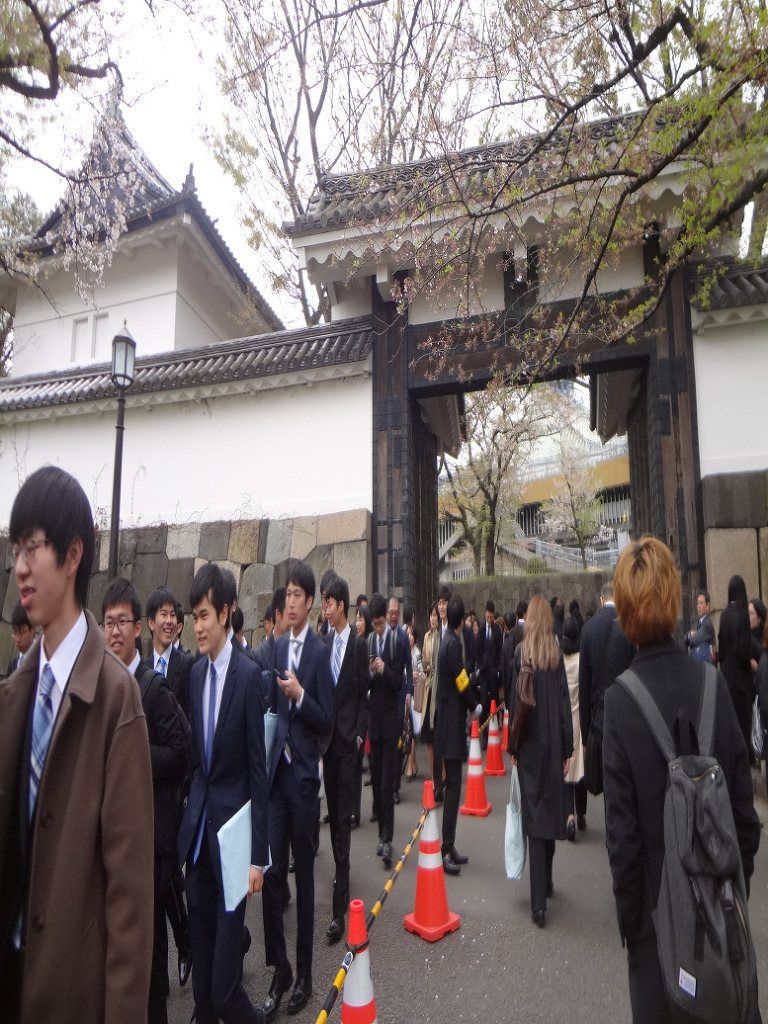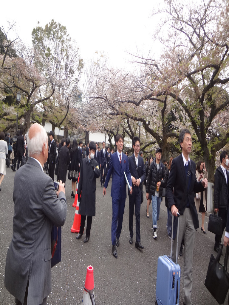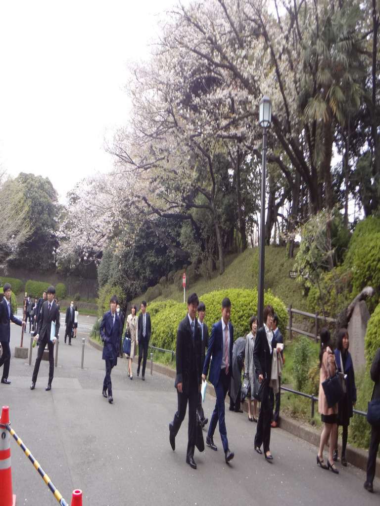 오늘 도쿄대학 입학식 에는 학생을 따라온 잘 차려 입은 부모들 이 많이 보이는데....