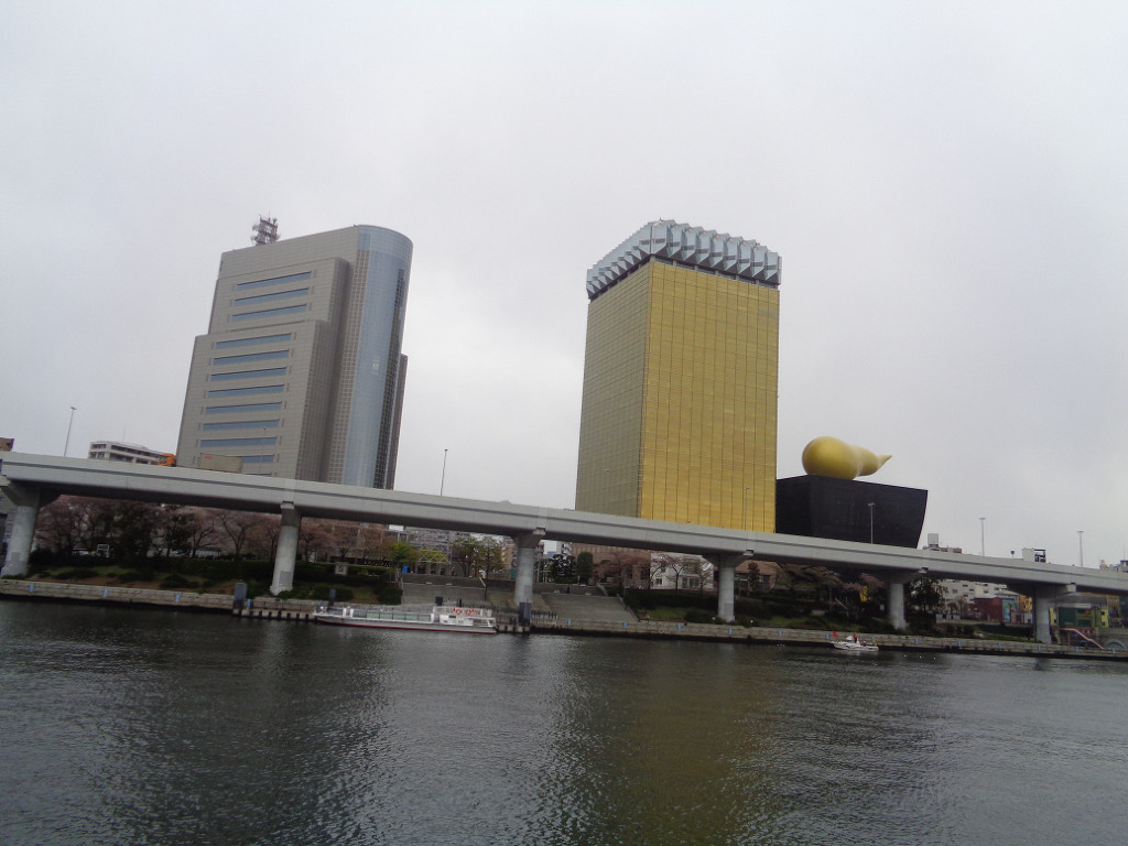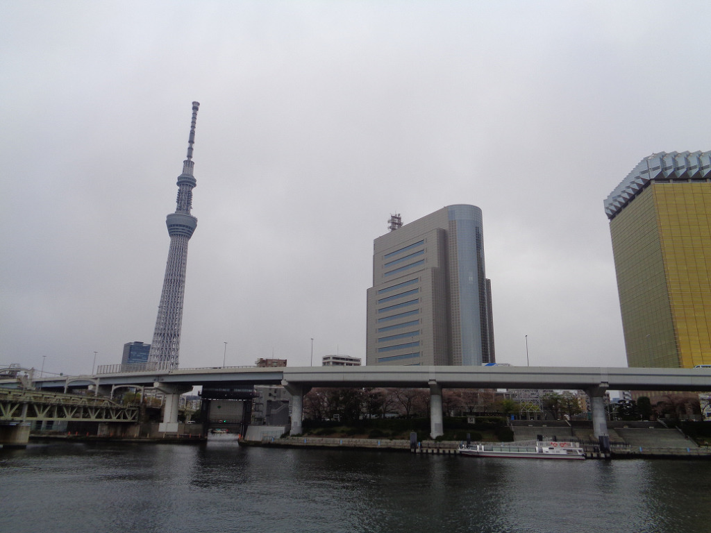 센소지를 나와 동쪽으로 걸어서 스미다강 에 이르러 에 634미터 스카이트리와 이미 져버린