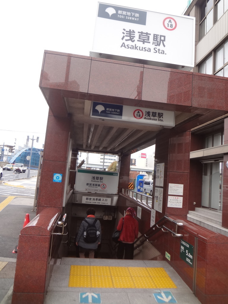 스미다 강을 끼고 150 미터를 내려가서는 도에이 지하철 아사쿠사역 으로 내려 갑니다.