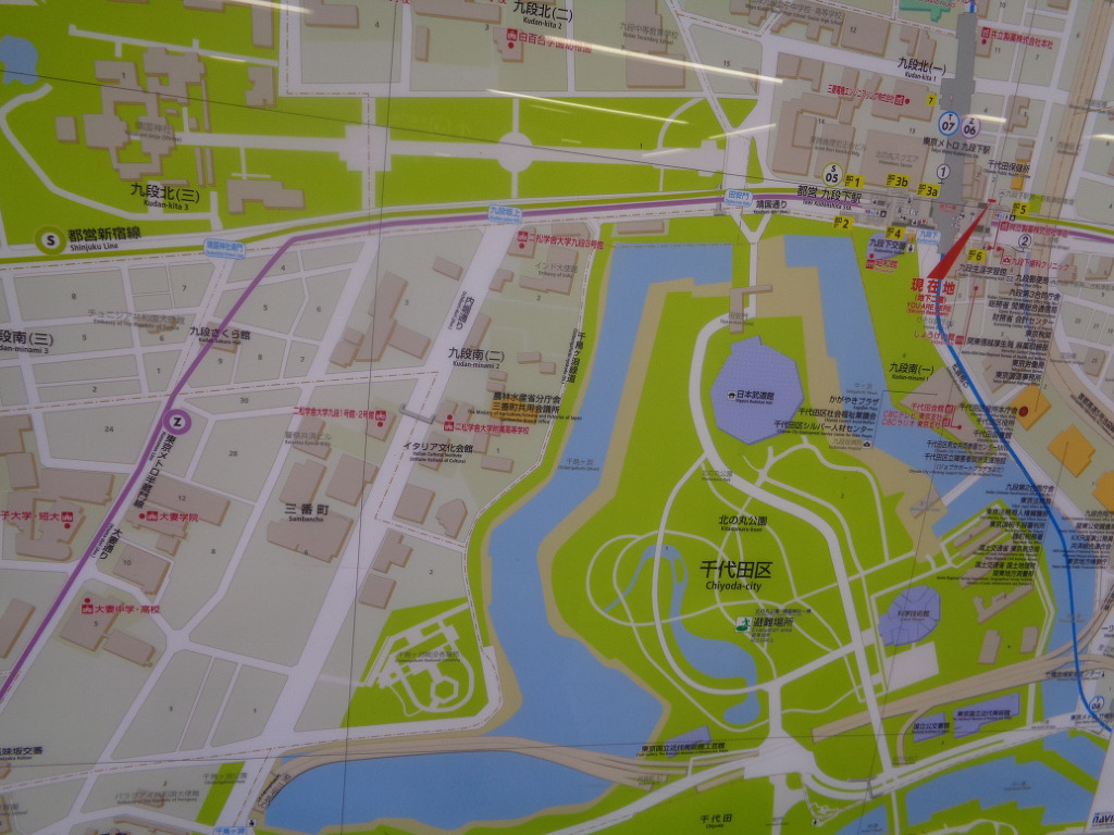 도에이 지하철 신주쿠선 으로 갈아타고 4정거장 구단시타 九段下(구단하) 역에 내립니다.