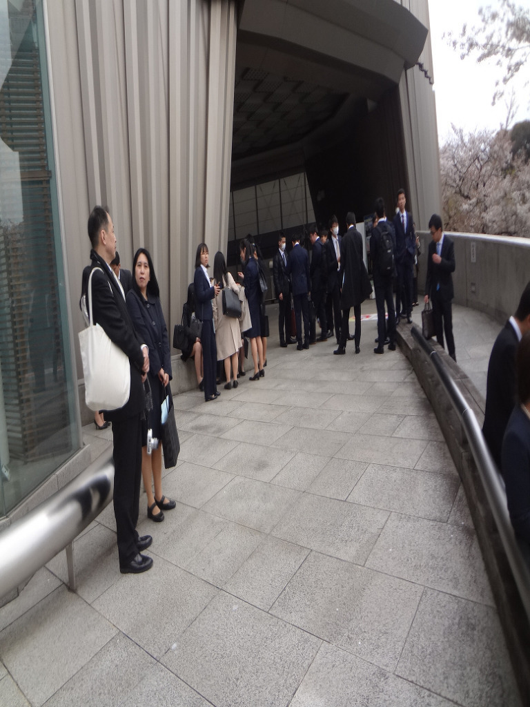 를 넘어가니 건너편에는 구름 같은 인파 가 몰렸는데, 보자니 오늘 도쿄대학 입학식 이