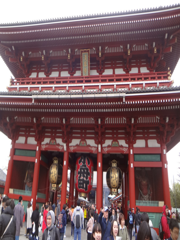 으로 들어가 나카미세도리 (仲見世通り)를 걸어 센소지 (浅草寺, 천초사)에 가니 628년