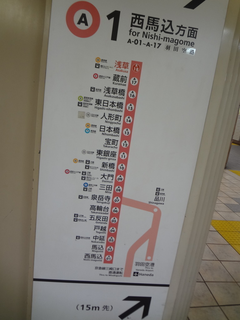공항에 가는 도에이 지하철 아사쿠사선 서마부행 지하철 을 타고는 3정거장을 가서는