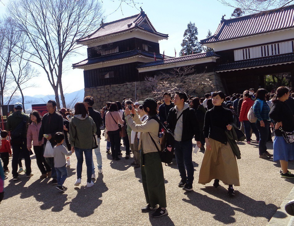 옛날 오다와라성 에서 보았듯이 여기 우에다 성에서도 관광객 들이