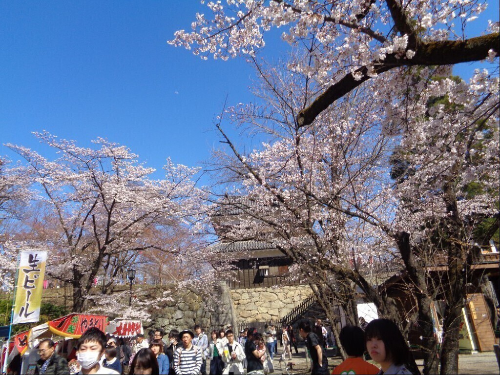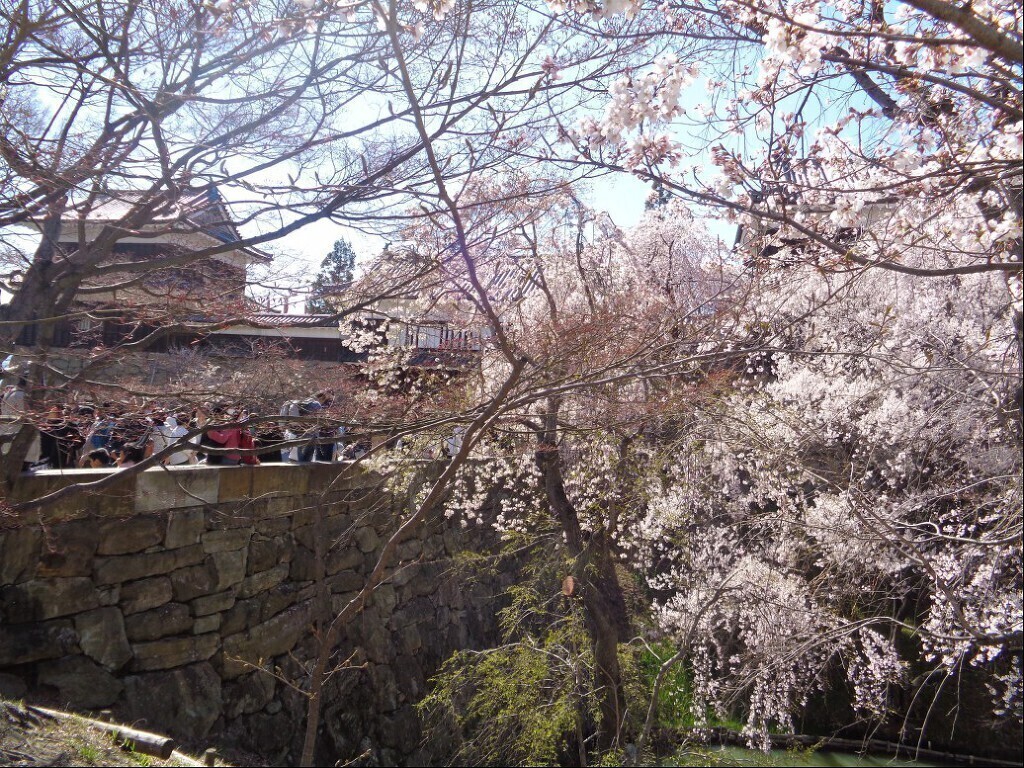 해자였던 강에 놓인 다리 를 건너 성 안으로 들어서는데 벚꽃 이 만개한게 볼만합니다.